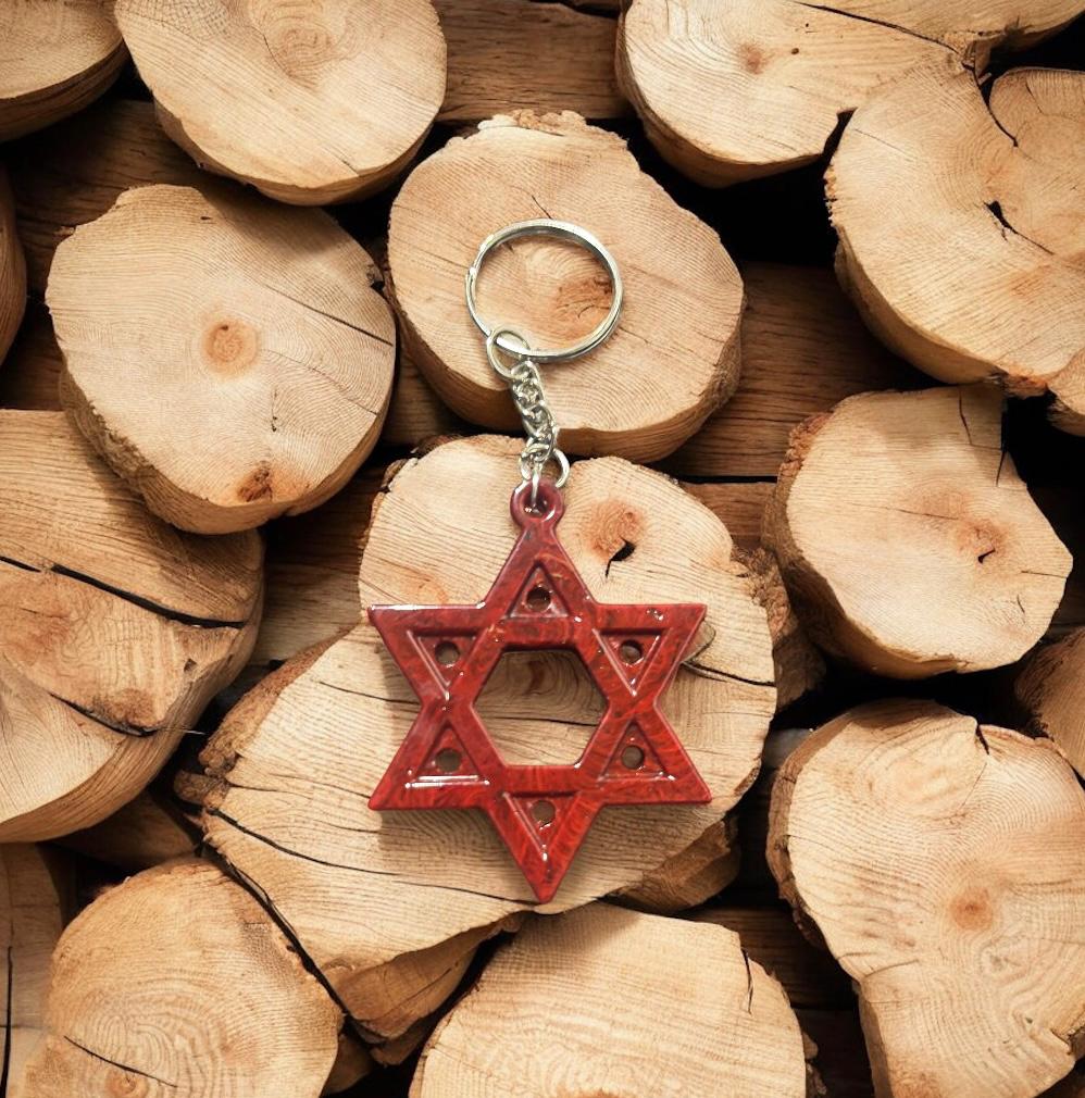 Handgemachter Pentagramm-Schlüsselanhänger aus Epoxidharz