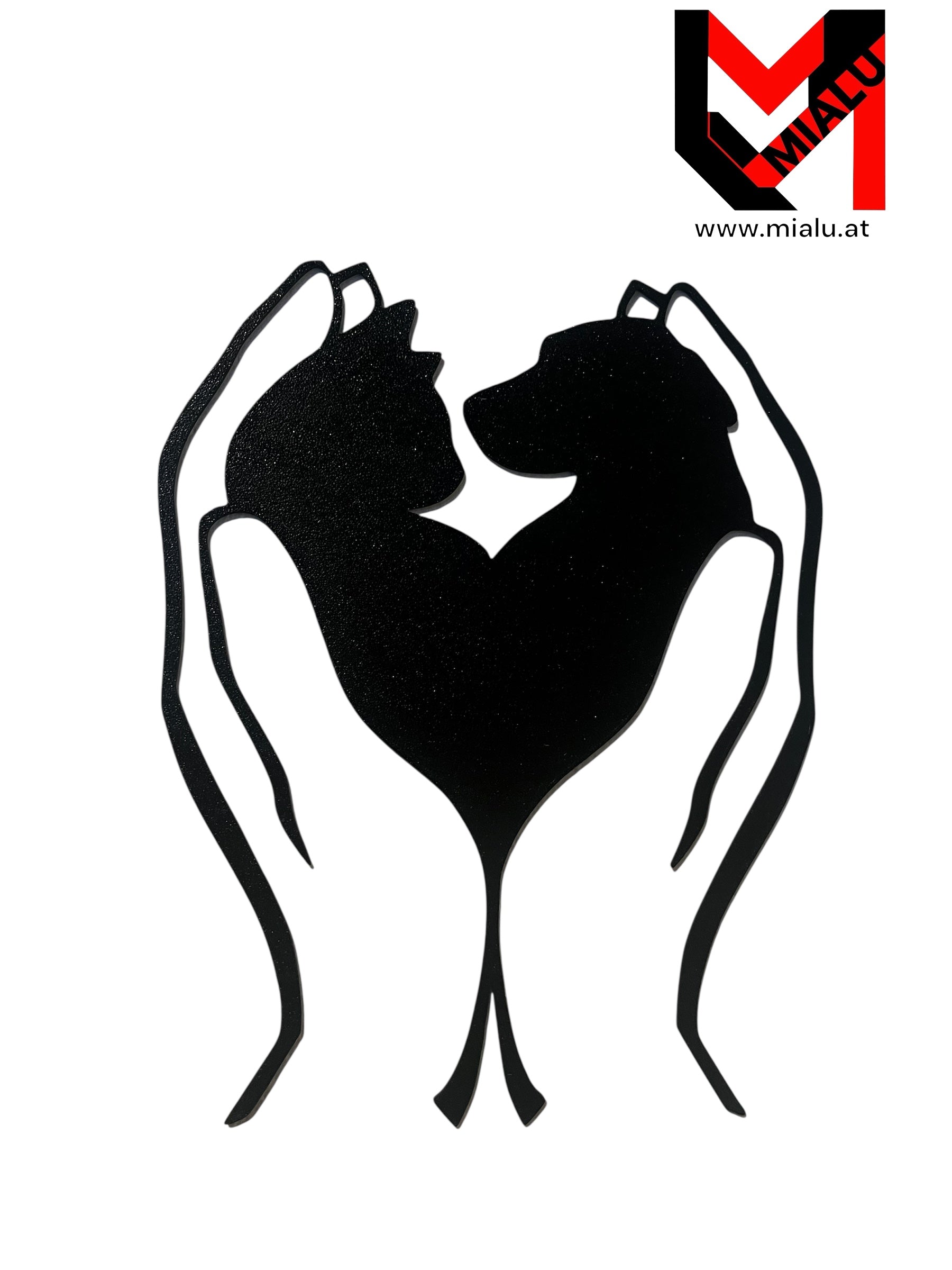 *🐾 3D Wandbild "Herz aus Händen mit Hund & Katze" 🐾*
